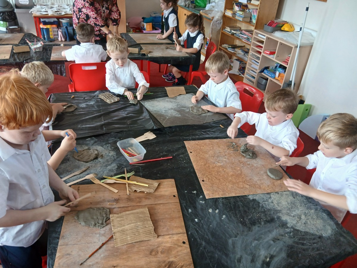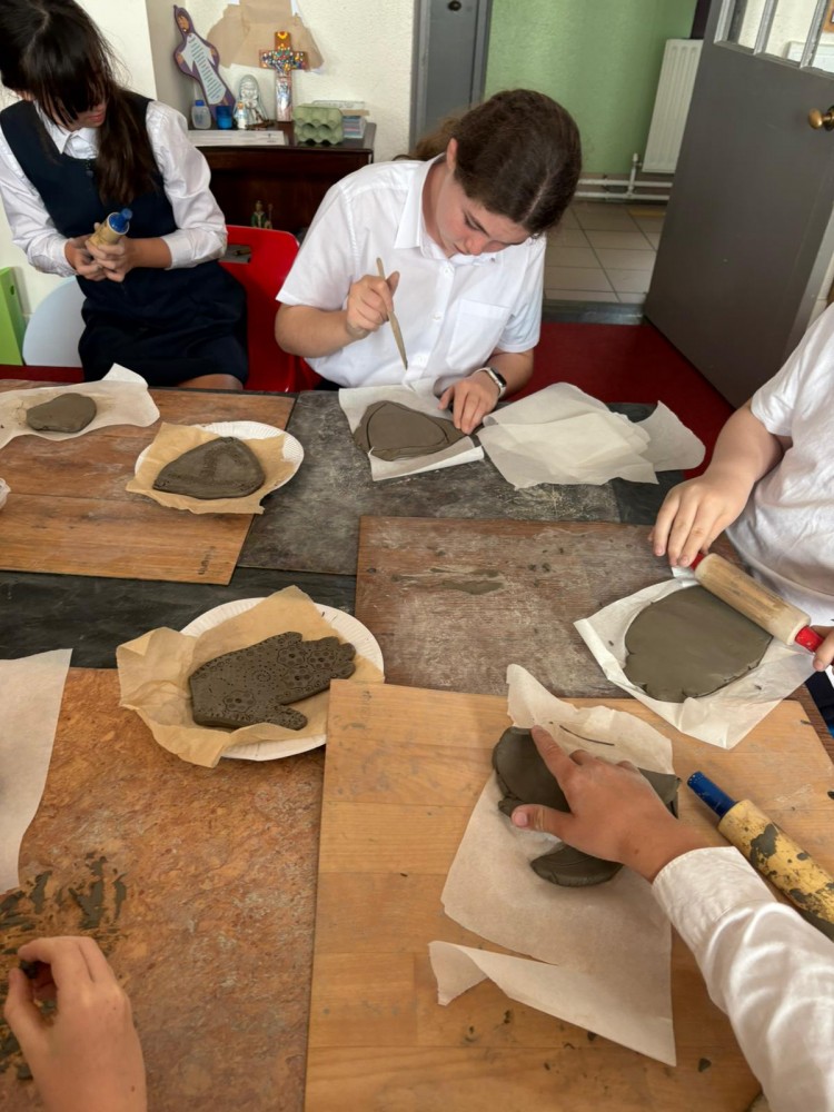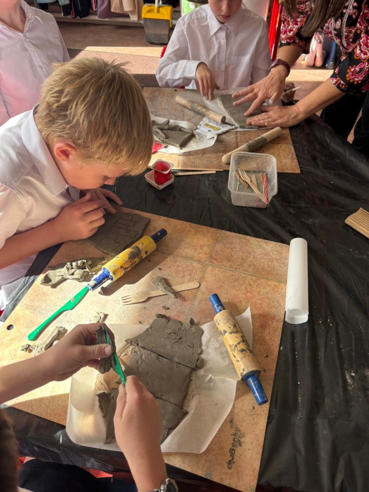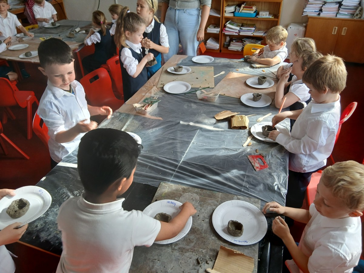 Joanna, from Creative Schools, got us started on our Clay Projects in September. We made everything from pinch pots to personalised crests. We are learning how to handle the clay, to manipulate it and then to paint it using the correct methods.
