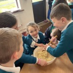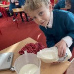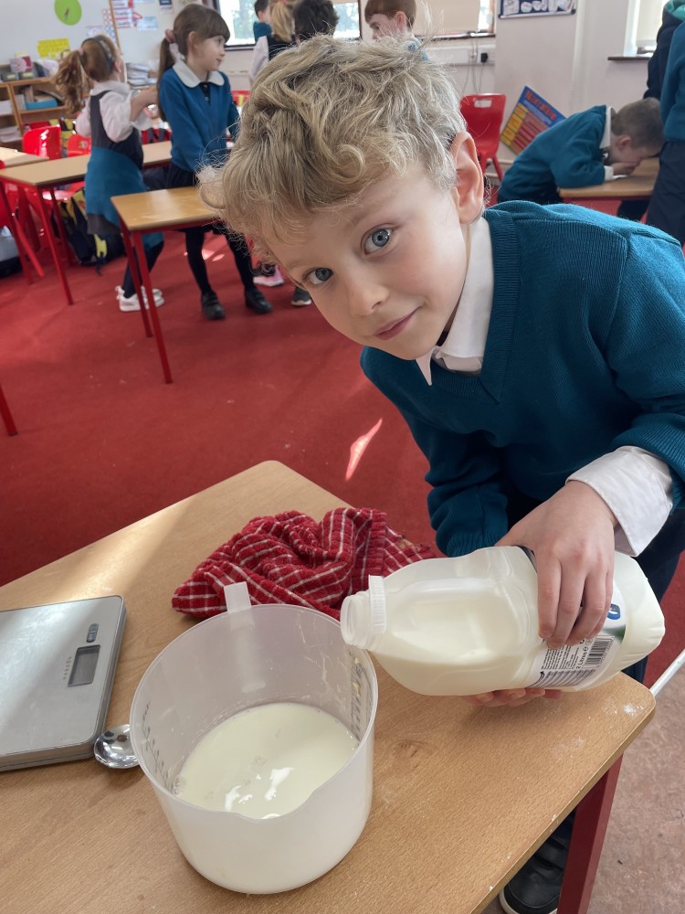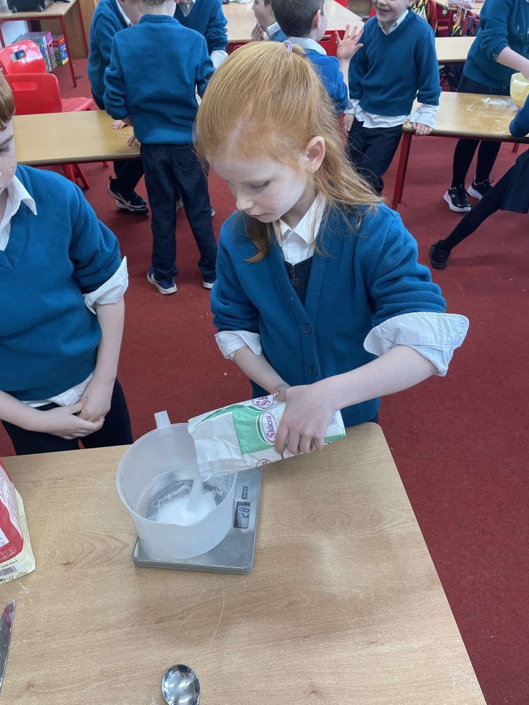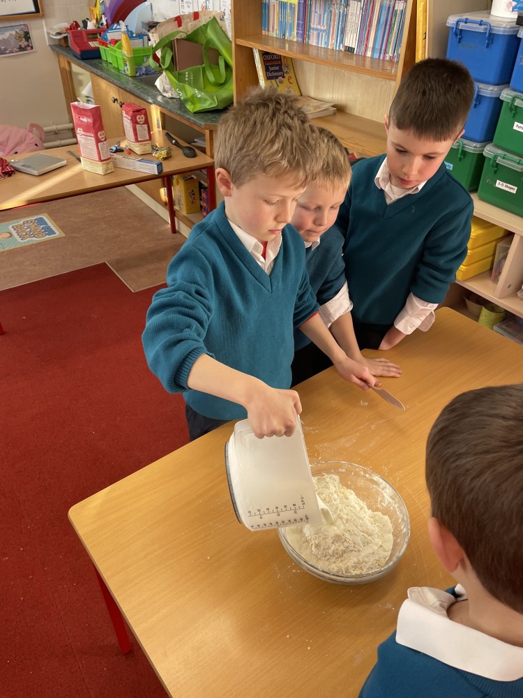 We all know Ms Collison loves to bake and she treated us to an afternoon of baking last week. We made yummy scones. We all learned how to measure out the ingredients and mix them in the correct way. We used our new school oven to bake them and of course, we enjoyed eating them at the end of the day. Lots of learning and a treat at the end!