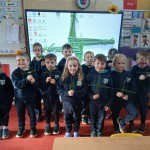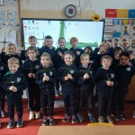 We were thrilled when Tipperary Senior hurlers Andrew Ormond and Joe Fogarty visited the school along with Pio Kennedy, Games Development Officer. They brought the Liam McCarthy and JJ Kenneally cups with them. We sang them our version of The Broad Majestic Shannon and they answered our questions. We are very lucky to have seen the Liam McCarthy Cup and to speak to some of our heroes.